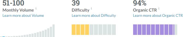 That volume may look nice, but not only is the Keyword Difficulty pretty high, but look at that estimated CTR. Let’s take a quick look at the SERP itself …