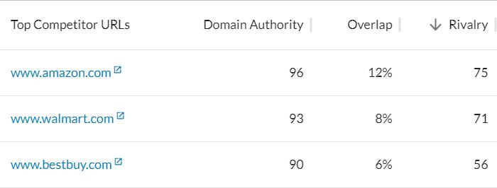 No big surprises here, and no one should be shocked that this list includes not only brick-and-mortar competitors, but online retail juggernauts like Amazon. Let’s take a deeper look, though (the following are competitors #8, #7, and #22 in our current data):