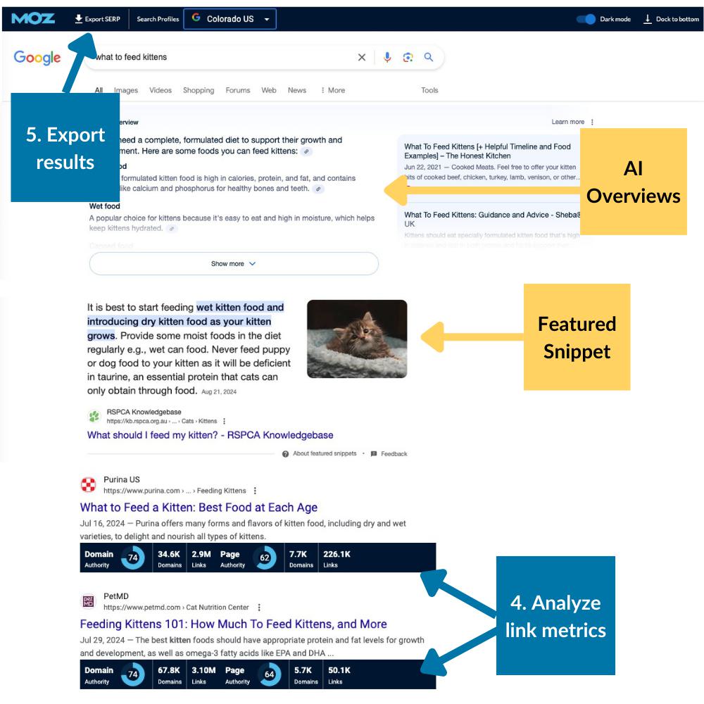 Is there a SERP Feature present, and if so, what’s the format? In this case, there is a Featured Snippet in a list format. When I click into the URL that has captured the Snippet, I’m looking for the on-page attributes that have been implemented, such as an H2 tag and a bulleted list.