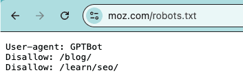 To check if your site has a robots.txt file, enter your root domain followed by /robots.txt. For example: