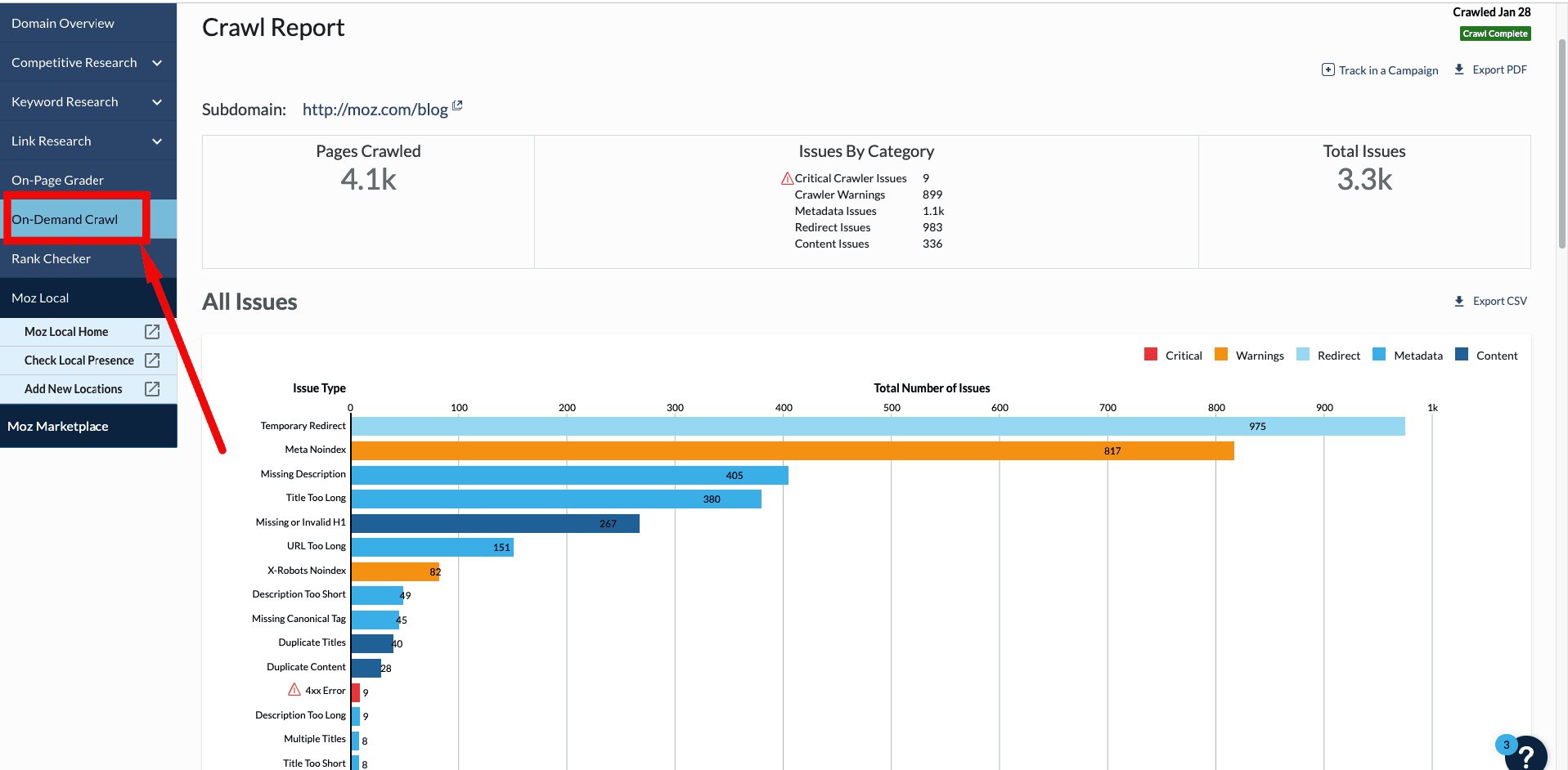 Conducting SEO audits: Tools like Moz Site Crawl can automate website audits, identifying broken links, duplicate content, and missing alt tags.