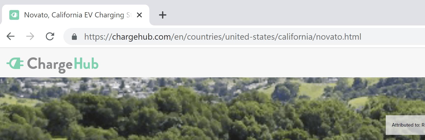 Title tags appear as clickable blue links for a webpage in Google search results. For example, a SERP result might display a title tag like “Novato, California EV Charging Stations Info.”